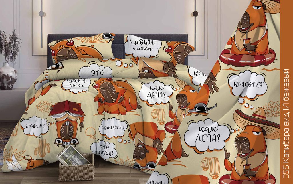 Материал бязь набивная, ширина 150 см, в рулоне намотка 50 м, поверхностная плотность 120 г/м2, риунок 355 Капибара, от производителя Иваново, в рулонах, оптом, предлагает интернет магазин Оптовые Поставки - Екатеринбург, отзывы, цена за мп.